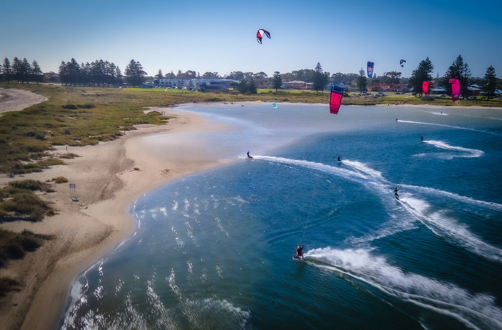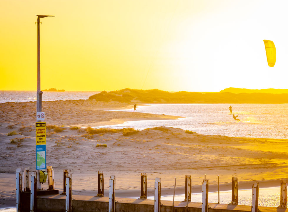"THE POND," showcases a world-class kiteboarding location in Safety Bay, Rockingham, Western Australia. Experience the thrill of kiteboarding in a safe and picturesque.
